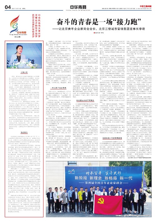 几年间在商会里与大家一起成长,李萌自己最大的体会就是:“在工商联为我们搭建的青年企业家平台,感受到了党和政府的关怀,找到了众多志同道合的小伙伴们,有工商联这个‘家’,创业路上再多艰辛也相信都会扛过去,因为有强大的理想和信念支撑。”至今,李萌也不会忘记她发起成立北京青年企业家商会的初心,就是要为非公有制经济人士的青年群体正名。“富二代群体,富的是精神,传承的是责任。未来我们更是‘复二代’,即实现中华民族伟大复兴的一代。理想是我们未来把企业做大做强的目标,而信念更是我们做大做强的决心与信心。”