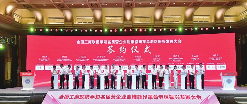 据了解,全国工商联携手知名民营企业振兴革命老区赣州行活动于今年4月23日启动。活动开展以来,一大批全国工商联直属商会、发达省市工商联及知名民营企业赴赣州开展投资考察。据不完全统计,截至目前,已签约各类项目126个,签约总额近912亿元;在谈项目91个,意向投资金额643亿元。