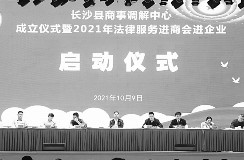 10月9日,长沙县商事调解中心揭牌仪式暨2021年法律服务进商会进企业启动仪式召开。长沙县委副书记、统战部部长、县委党校校长杨应龙,县委常委、政法委书记黄波,县政协副主席、县工商联主席张小春,县人民法院党组书记、院长丁念红等相关负责人,各镇街相关负责人、镇街商会调解工作室负责人,县人民法院、县司法局驻商会商事调解工作室指导员,以及各商会会长、秘书长及企业负责人参加了本次活动。