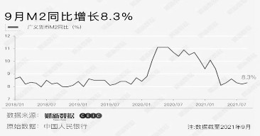 货币供应方面,2021年9月末狭义货币(M1)的同比增长从8月末的4.2%下滑至3.7%;广义货币(M2)余额234.28万亿元,同比增长8.3%,较8月末同比增速提升0.3个百分点,使M1与M2剪刀差进一步拉大。