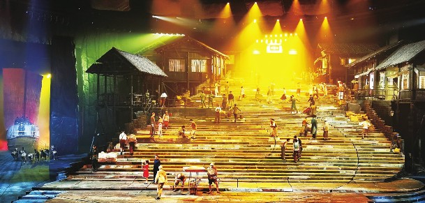 重庆兴亚控股集团有限公司投资近8亿元建造的“重庆1949大剧院”,是目前世界上最大的室内动态沉浸式表演剧场。该剧场位于重庆市沙坪坝区磁器口,占地面积13967.9平方米,总建筑面积2.5万平方米,设有1500座观众席,独创出多维立体沉浸式室内动态舞台,由5个可360度旋转的圆环组成,演艺空间与观演空间交相穿插,可不断变换视角位置,使观众与演出融为一体,从而营造出身临其境的独特观演场景体验。剧场还原了重庆吊脚楼、磁器口码头、石阶、牌坊、监狱岗哨、铁牢等视觉风貌,可感受裸眼3D动态全景音画、智能灯光等高科技。