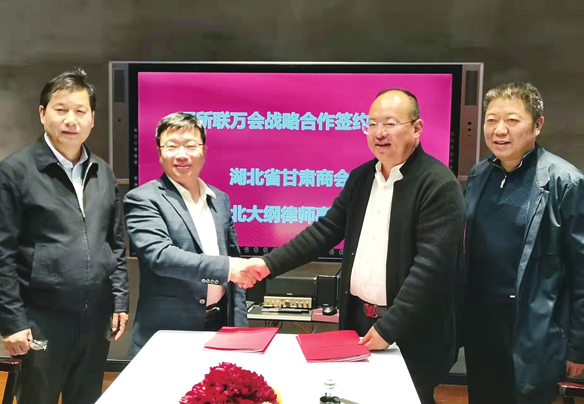湖北大纲律师事务所主任熊茂垠为商会会员开展法律知识宣讲,对会员企业遇到的法律问题进行现场解答,并与湖北省甘肃商会签订“万所联万会”战略合作协议。(鄂联宣)