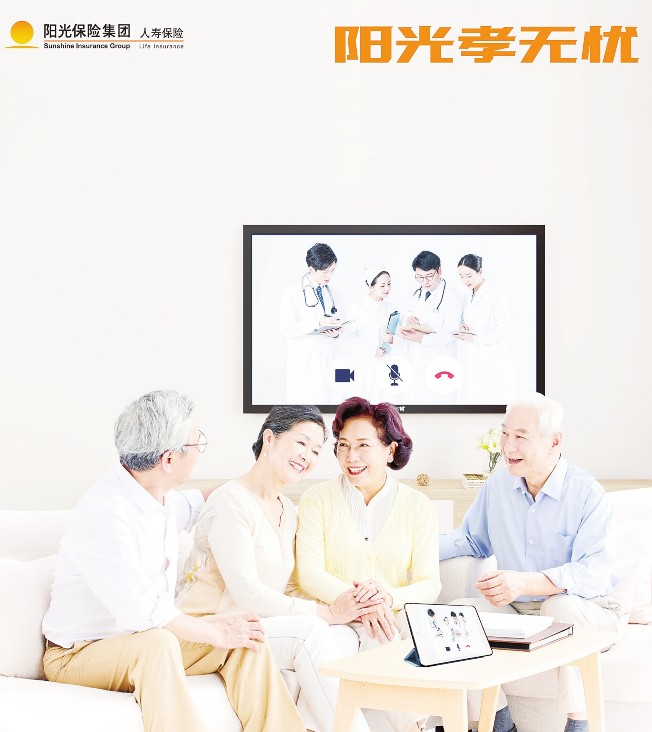 围绕以上居家养老“痛点”,“阳光孝无忧”应运而生。阳光人寿依托强大的资源优势,聚焦居家安全、居家医疗、居家陪伴三方面,整合多项适老化服务,为居家父母提供涵盖全年家庭医生视频问诊、在线购药、摔倒一键呼救、生病门诊、住院绿色通道、全年定期护士上门基础体检、居家运动健康等多个项目的服务。线上专业医生24小时无限次的视频问诊服务,让老人无时无刻都可以得到医疗资源的支持;“一键呼叫”功能可以满足老年人就医建议、挂号辅助、小病开药等需求,且人工通话的方式更加符合老年人的操作习惯;开创护士上门服务,结合视频问诊实现医护结合,让老人足不出户即可享受便捷的诊疗服务;内置购药平台,视频问诊后,所需药物可通过线上平台直接购买,并快速送到客户家中,一站式解决老年人的用药需求。此外,“阳光孝无忧”还提供爱心送餐、暖心适老化改造评估安排、康养旅游等多项附加服务,深度解决居家养老客户的医、健、护、康、养、住、游等多方面需求,真正让老年客户在晚年生活里过的有品质、有尊严。