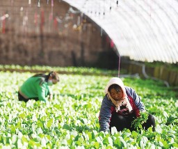 冬日时节,青海省海东市互助土族自治县的蔬果大棚内,菜农进行冬种、冬收等工作,为元旦、春节的蔬果市场做准备。近年来,青海省互助县大力发展高效设施农业,鼓励农民成立蔬菜种植合作社,扩大高原绿色蔬菜种植规模,着力培育绿色有机品牌,不断拓宽农民增收渠道,助力乡村振兴。(张龙)