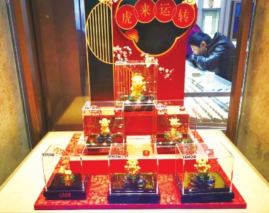 春节假期,黄金消费市场也迎来旺季。为了把握虎年开门红,各大金饰品牌不约而同推出虎年金币、金虎摆件、福虎吊坠、手链等应时应景新品。广州天河城百货一层聚集着各大金饰品牌数十个专柜,虎年贺岁饰品成为春节前后最受欢迎的产品。“老虎意头好,很多人愿意开年买求个好运,再加上相比去年,今年的金价有所下滑,我们也加大了打折促销的力度,多重因素推动春节期间生肖金饰销售火爆。”专柜销售人员说。