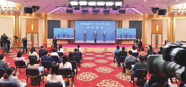 3月10日,全国政协十三届五次会议第三场“委员通道”采访活动在北京人民大会堂新闻发布厅举行。这是分会场。李鑫/摄