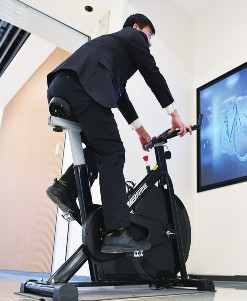 ①参观者在雄安新区剧村变电站绿能健身体验区进行体验。