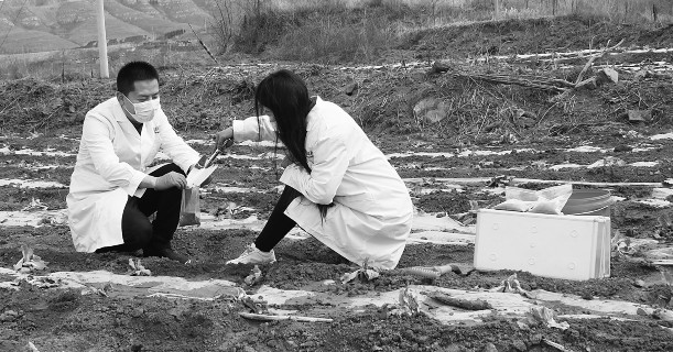 今年以来,山东省青州市工商联、非公有制企业党委深化实施双推双选、双联双促、双兴双强“三步工作法”,强化党建引领,引导商(协)会、民营企业与村庄结成利益综合体,实现党建联建、村企联建,持续推进“万企兴万村”行动走深走实。图为山东京青农业科技有限公司专技人才到结对共建的庙子镇梨园店村白菜育种地块取样,进行土壤养分检测,助力农户精准施肥,提高作物产量。