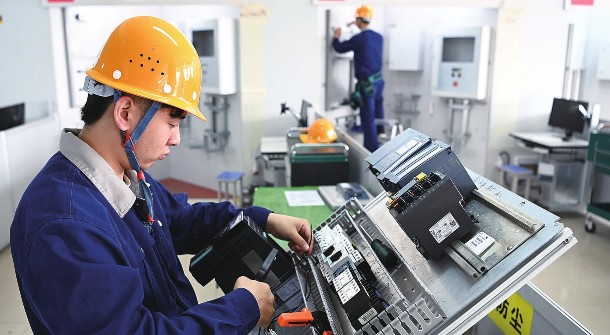 随着国家高度重视大国工匠与技能人才培养,受益于政策推动、产业需求、市场牵引、以赛促学等利好因素,优质技工教育迎来新一轮发展热潮,越来越多的“00后”走上“一技之长,能动天下”的成才之路。图为西安技师学院电气自动化技术专业学生孙昶在进行饮料生产线电气控制系统的安装调试。新华社记者刘潇/摄