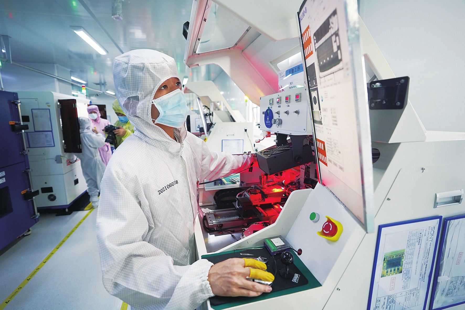 近日,江西各地企业陆续复工复产。南昌高新区的多家高科技企业在做好疫情防控的同时稳步加快生产进度,不少企业开足马力满负荷生产。图为南昌高新区的一家通信企业,工作人员在生产线工作。