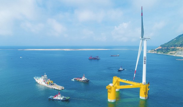 5月29日,国内首台深远海浮式风电装备“扶摇号”在广东茂名广港码头拖航,将前往平均水深达65米的广东湛江罗斗沙海域进行示范应用。该平台由中国船舶集团海装风电股份有限公司牵头,联合相关单位自主研制。平台配备6.2兆瓦抗台型I类风力发电机组,在深远海应用场将依靠九个对称分布的悬锚链系泊实现固定。新华社记者刘大伟/摄