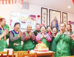成立于2014年的贵阳诚善助老慈善公益服务中心近日迎来8周年纪念日。该中心目前在贵阳市开办8家互助餐厅,为超过166万人次的老人免费供餐。图为志愿者在贵阳诚善助老互助餐厅红岩东郡店内唱生日歌,庆祝诚善助老慈善公益服务中心8周年纪念。