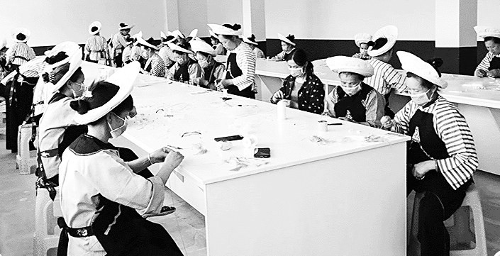 图一为贵州贞丰县少数民族妇女进行香囊手工艺生产。