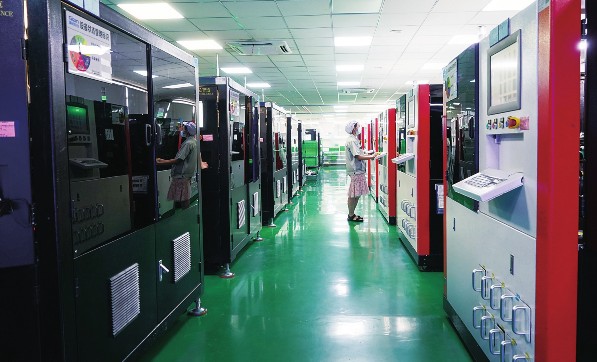 近日,江苏省常州市在抓好疫情防控工作的基础上,全力以赴保生产、稳运行,多措并举加大助企纾困落实力度,全力拉满重点行业、重点企业复工复产“进度条”。图为工人在江苏精研科技股份有限公司“5G+AI”质检示范车间操作设备。