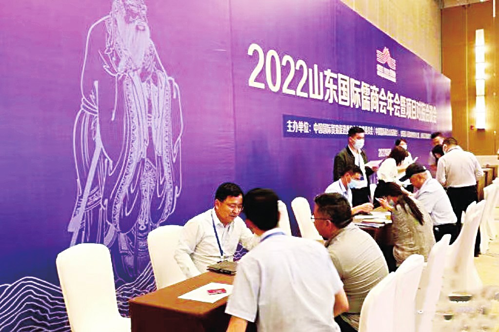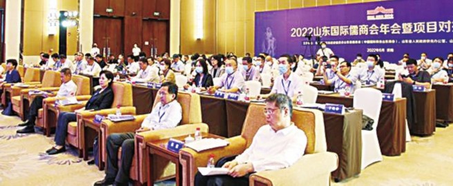【本报济南讯】日前,首届山东国际儒商会年会暨项目对接洽谈会以“线上+线下”相结合的形式在济南举行,来自20多个国家的境外儒商会代表、境外华侨华人组织及境内外企业代表共千余人与会,共觅商机。中国国际贸易促进委员会山东省委员会会长孟向东,山东省人民政府侨务办公室主任孙传尚,山东省工商联副主席、山东省总商会副会长孙美菊出席活动并致辞。