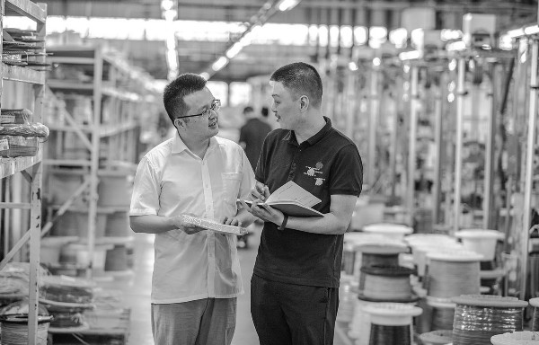 今年以来,重庆市璧山区为全方位支持企业发展,通过现场座谈、车间参观、实地查看等形式让政府相关部门工作人员靠前站、全程跟、专人访,深入了解企业经营状况。该区出台了涉及企业发展的资金支持、用工保障、税费缓缴、产品推介、人才引进等方面系列措施,助企纾困解难,进一步提振企业发展信心,激发企业创新活力。图为在重庆长秦汽车配件有限公司,重庆市璧山区高新区管委会的工作人员(右)在后工序车间内实地走访,了解企业遇到的困难。