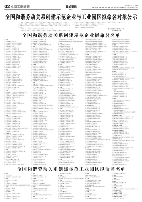 全国和谐劳动关系创建示范企业与工业园区拟命名对象公示