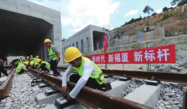 福州-厦门铁路铺轨施工全线顺利贯通