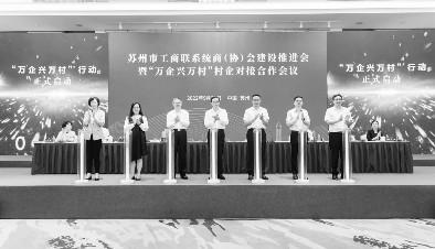 为认真落实全面推进乡村振兴的决策部署,苏州市工商联、市农业农村局、市乡村振兴局、市光彩会、市农发行、市农行联合下发《关于开展“万企兴万村”行动的实施方案》。会上,“万企兴万村”行动正式启动。