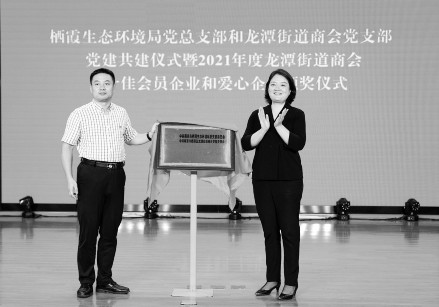 【记者庄道秋通讯员雷建军南京摄影报道】为实现党的建设与商会发展良性互动,促进商会会员企业安全环保工作提质增效,形成共建、共创、共享、共学的共赢局面,本着“互带互动、优势互补、资源共享、共同发展”的原则,日前,南京市栖霞区龙潭街道商会党支部与栖霞生态环境局党总支部举行党建共建签约揭牌仪式。