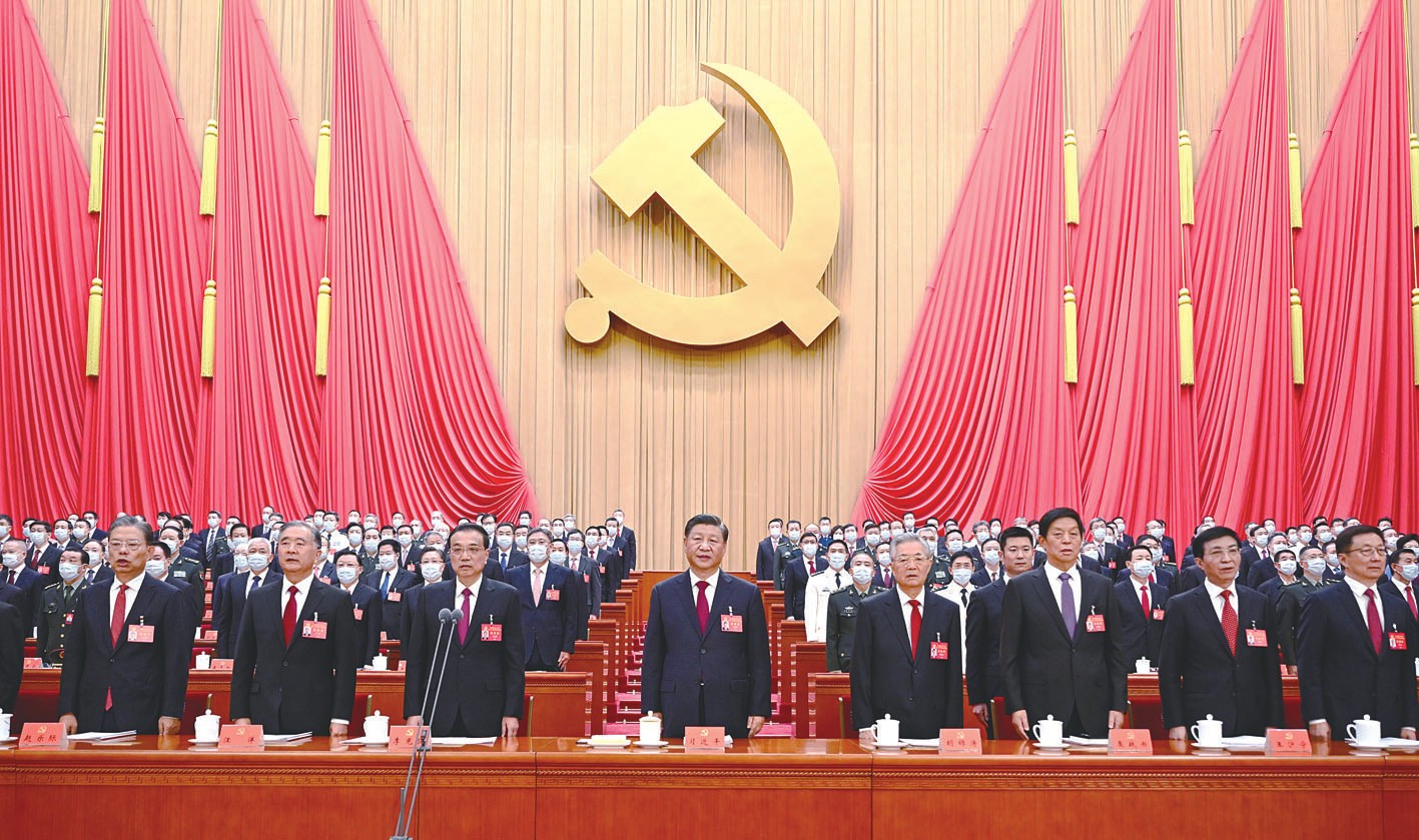 (图2)10月16日,中国共产党第二十次全国代表大会在北京人民大会堂开幕。这是习近平、李克强、栗战书、汪洋、王沪宁、赵乐际、韩正、胡锦涛在主席台上。新华社记者李学仁/摄