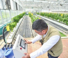 近年来,湖南省长沙市望城区靖港镇众兴社区的辣椒基地通过智能大棚的运用与科学精细管理,逐渐打破“靠天吃饭”的困境,形成一条集育苗、种植、采摘、销售于一体的辣椒产业链,带动众兴社区集体经济发展,农户就业增收。图为在长沙市望城区靖港镇众兴社区的辣椒基地,工作人员操作温室精量施肥机。新华社记者陈泽国/摄