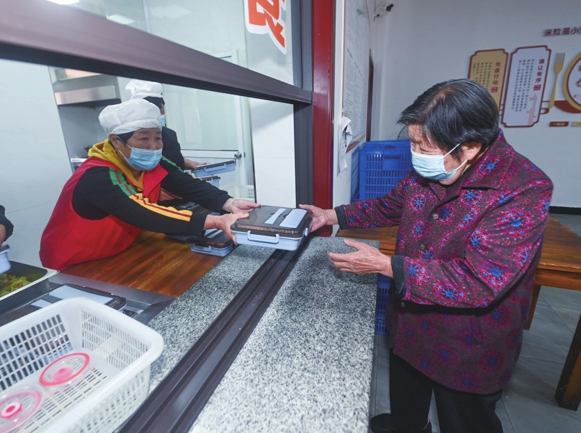 今年以来,浙江省杭州市临安区昌化镇整合医疗、教育等资源,推进乡村居家养老服务中心和婴幼儿成长驿站升级改造,精心打造“一老一小”服务场景,构建乡村幸福生活圈,让乡村百姓在家门口就能享受到便捷的养老和幼托服务。图为在杭州市临安区昌化镇居家养老服务中心老年食堂,工作人员给老人递上配好的午餐。新华社记者徐昱/摄