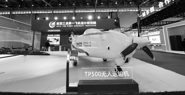 这是在第十届中国(绵阳)科技城国际科技博览会展会现场展出的TP500无人运输机(11月16日摄)。