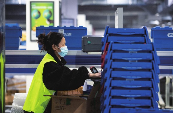 为保障防疫医疗物资供应,湖南省长沙市部分药房积极采购相关物资,药房物流中心全力运转,以满足民众用药需求。图为在位于长沙市开福区的老百姓大药房长沙物流中心,工作人员在登记入库药品信息。
