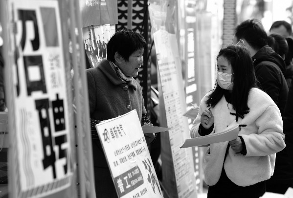 新春伊始,各地举行人才招聘会,吸引众多求职者前来应聘。图为2月1日,求职者在安徽省合肥市肥西县紫蓬镇举行的招聘会现场了解岗位信息。