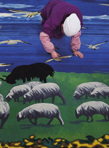 随着旅游业复苏,藏毯需求量增加。位于青海省西宁市的圣源地毯集团有限公司加紧赶制款式精美的藏毯,确保订单按时交付。据介绍,今年1月份,圣源地毯集团有限公司销售额同比增长27%,目前接到的国内外订单已排到3月底。图为日前在西宁市圣源地毯集团有限公司生产车间,操作工检查毯面、拔花刺。