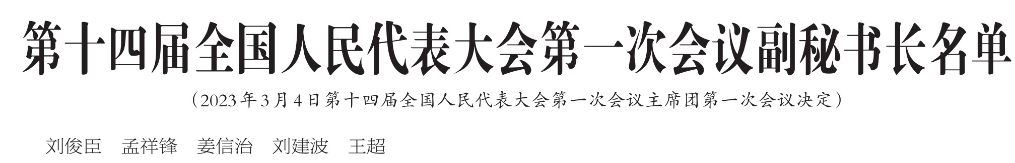 第十四届全国人民代表大会第一次会议副秘书长名单