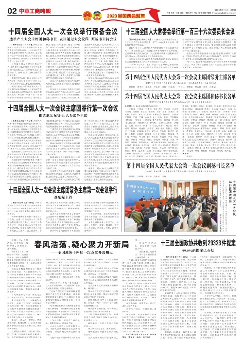 第十四届全国人民代表大会第一次会议主席团和秘书长名单