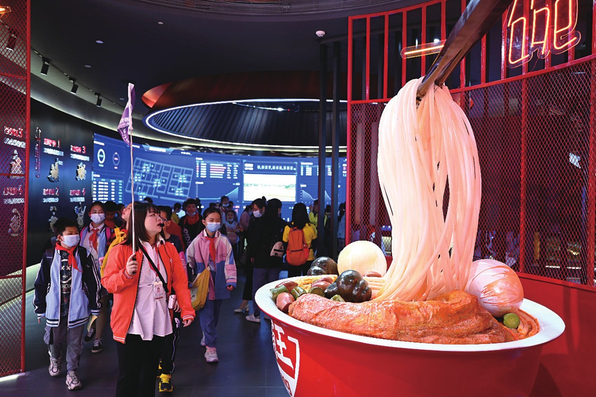 (图4)在柳州螺蛳粉产业园,学生正在进行研学活动