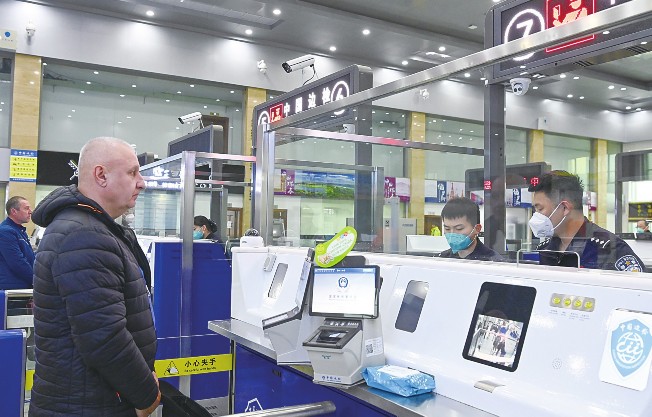 吉林省珲春市拥有对俄铁路口岸和公路口岸,是“一带一路”的重要节点。珲春口岸可直通俄罗斯扎鲁比诺、符拉迪沃斯托克等港口城市,是我国对俄贸易重要通道。数据显示,2022年,珲春对俄罗斯完成进出口总额140亿元,同比增长32%,对俄外贸量级和业态均有所突破。图为3月22日,俄罗斯货车司机在珲春公路口岸入境大厅办理入境检查手续。珲春公路口岸自1月8日恢复客运通关后,贸易十分繁忙。