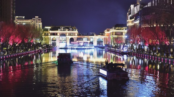 (图)位于北京市朝阳区的亮马河游船旅游项目开启2023年首航。亮马河游船航线沿线途径燕莎码头、蓝色港湾等多处商圈,成为近年来北京文旅消费的新亮点。新华社记者陈钟昊摄
