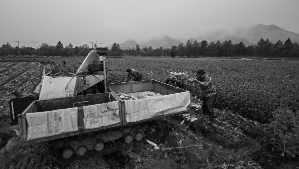 近日,在浙江省诸暨市姚江镇国家级农业产业园,蔬菜基地里的萝卜进入春季丰收季,种植户忙着采摘、清洗、装包,准备运往周边县市农贸批发市场。该基地是姚江镇通过招引乡贤回归建立的项目,共占地100余亩,旨在拓宽当地农产品销售渠道,带动周边农户增收。在萝卜收获结束后,这里将继续栽种毛豆等农作物。图为种植户把采收的萝卜装车。