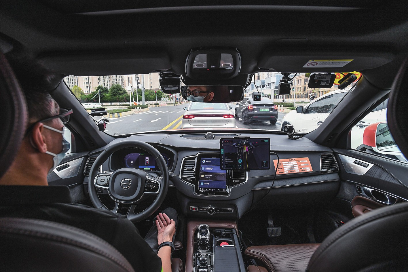 近年来,广州市花都区抓住全球汽车产业“换道超车”战略机遇,加快推动汽车产业高质量发展,在建设匹配智能驾驶道路、云控、智慧交通系统等“车路协同”工程的基础上,启动智能网联汽车示范运营。近日,首批获得广州智能网联示范运营资质的滴滴自动驾驶网约车在广州市花都区开启商业化示范运营,市民可在滴滴自动驾驶小程序下单呼叫车辆,体验自动驾驶服务,按实际行驶里程和使用时长付费。图为日前,乘客(左)在使用滴滴自动驾驶时,点击车内大屏开启行程。
