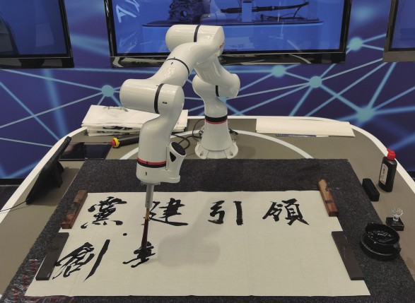 近年来,为纵深推进新旧动能转换,加快资源型城市高质量发展,山东省济宁市大力实施“制造强市”战略。2021年8月起,当地选派1600余名市县干部驻扎企业,一对一帮助企业谋思路、解难题、争政策、促攀登。截至目前,892家企业列入企业发展“攀登计划”,已培育龙头企业6家、领军企业6家、骨干企业42家、高成长企业320家、国家级专精特新“小巨人”企业51家,攀登企业拟实施投资500万元以上项目733个,总投资2200多亿元。图为近日在山东济宁,珞石(山东)智能科技有限公司研发的一款柔性协作机器人展示书写毛笔字。