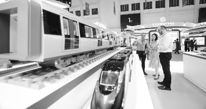 (图)在2023中国·廊坊国际经济贸易洽谈会上,嘉宾在廊坊临空国际会展中心参观展览(2023年6月17日摄)。京津冀是我国南下北上、东出西联的重要通道,拥有环渤海港口群和完善的铁路、高速公路网络。其中,河北省铁路营运里程、港口通过能力、高速公路通车里程均居全国前列。近年来,河北利用区位优势和现代化立体交通网络,积极承接北京商贸物流产业疏解。新华社发贾珺/摄
