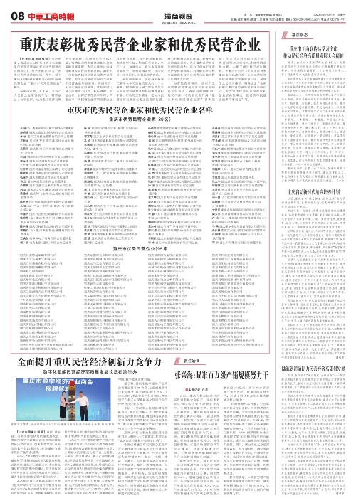 重庆市优秀民营企业家和优秀民营企业名单