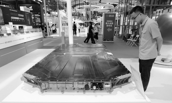 2023国际数字能源展于6月29日至7月2日在深圳举行,全方位多场景集中展示全球数字能源领域前沿技术和应用示范成果。图为观众在展会上观看展出的液冷电池包。