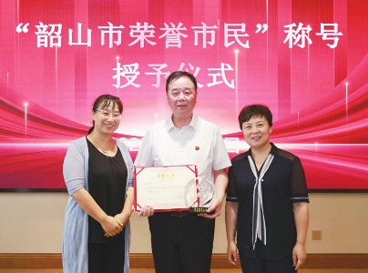 会上,韶山市向锦宸集团董事长李焕军现场颁发韶山市“荣誉市民”证书和奖牌。
