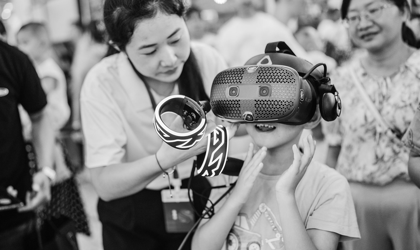 8月5日,小朋友在使用VR设备体验“桥旅融合”。当日,首届贵州科技节在贵阳国际会议展览中心开幕,本届科技节包括展览展示、交流合作、科普惠民等活动,将持续至8月9日。