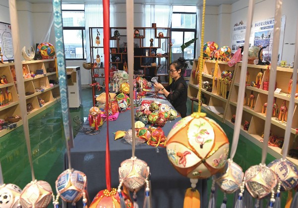 传统的绣球制作,分为浆布制板、绘画图案、手工绣花、内衬制作、剪裁绣片、填充缝合、组合成型、串珠流苏装饰等8个步骤。根据不同用途,表面绣有各种纹样,内部可填充香料或中草药。绣球从前是男女定情信物,如今则成为广受欢迎的伴手礼、香囊,销往全国各地,并通过电商平台出口到东南亚等地。新靖镇旧州村的绣球制作最具代表性,全村500多户人家,基本每家每户都有人会制作绣球,年产绣球约50万个。对于当地人来说,绣球不仅代表古老的手工艺,更是增收致富的手段,让农村妇女能够就近就业和居家灵活就业,用针线绣出乡村振兴的绚丽画卷。图为靖西市非遗传承人王秀芬在研制绣球。