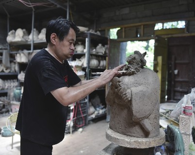 河南省禹州市神垕镇是国家级非遗项目“钧瓷烧制技艺”的发源地。近年来,禹州市以神垕古镇保护开发为引领,加大人才培养力度,拓展对外交流合作,强化文旅文创融合,推动钧瓷产业品牌化、精品化、差异化发展,积极探索钧瓷文化保护传承与创新发展的新模式。目前全市共有钧瓷相关企业200余家,年产销钧瓷220多万件(套),年产值24亿元。图为在河南省禹州市神垕镇槐树湾村陶瓷创客基地,钧瓷艺人杨根成在自己的工作室里创作钧瓷作品。