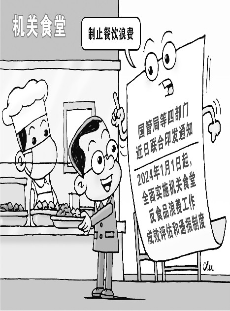 制止餐饮浪费是一项长期任务。国管局、国家发展改革委、商务部、市场监管总局近日联合印发通知,决定自2024年1月1日起,全面实施机关食堂反食品浪费工作成效评估和通报制度,督促机关在食堂食品采购、储存、加工、消费以及餐厨垃圾处理等环节做到节约减损,增强干部职工反食品浪费意识。