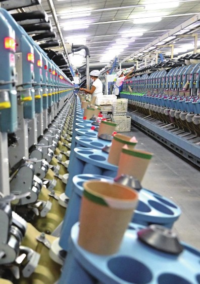近年来,河北省纺纱大县滦南县通过引导企业实施大规模设备技改创新,推动纺纱产业规模化、集约化发展,打造纺纱产业集群,助推区域经济高质量发展。据介绍,目前该县规模以上纺纱企业达30家,年纺纱能力50多万锭。图为工人在滦南县胡各庄镇一家纺纱企业的生产车间工作。