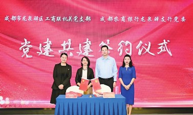 会议期间,龙泉驿区工商联与成都农商银行龙泉驿支行签订党建共建协议书,双方将以党建引领,通过组织建设互促、党员干部互动、党建载体互用、结对帮扶互助多种举措,共同开创党建工作新格局,更好助力政银企互信互促互赢。