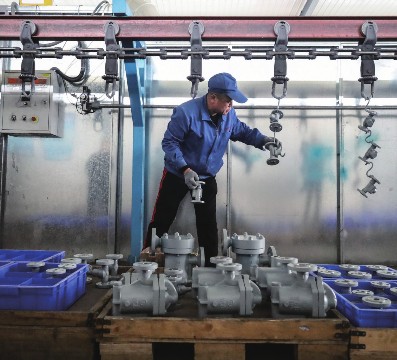 近年来,甘肃省平凉市聚力挖潜增效,由“资源富地”向“产业高地”转型,打造“平凉红牛”“静宁苹果”等农产品品牌,聚焦煤炭高效利用,打造陇东南经济高质量发展区域。图为工人在位于甘肃省平凉市崆峒区的甘肃红峰机械有限责任公司工作。